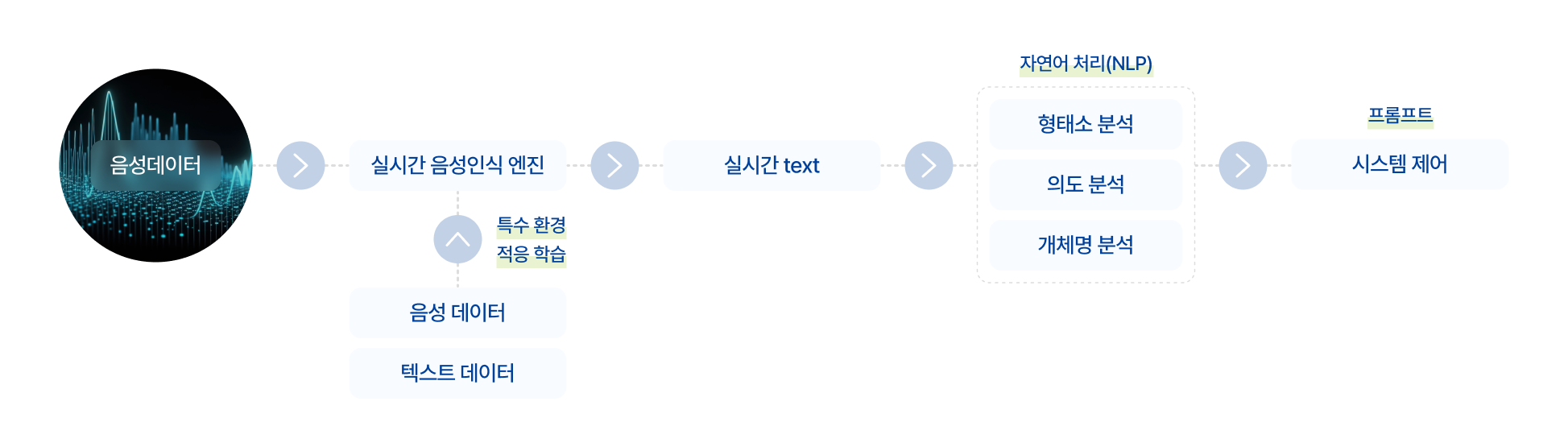 AI 음성인식 제어 기술은 딥러닝 음성 인식 엔진을 사용해 음성을 텍스트로 변환하고